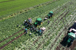 The Vegtech harvest aid conveyor is designed to easily attach to a tractor’s three-point hitch, providing a versatile solution for harvesting various types of vegetables. This robust and efficient machine allows producers to perform packaging directly in the field, thereby optimizing the harvest process and reducing handling time